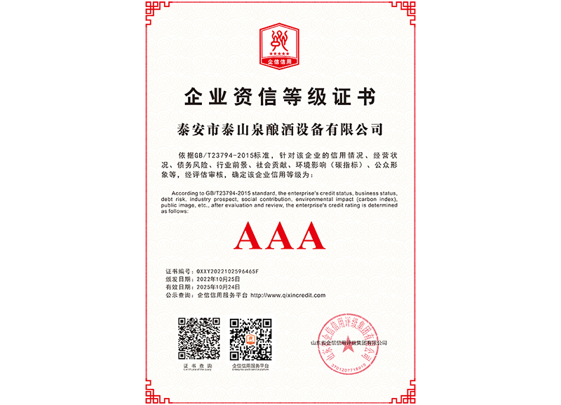 泰安市泰山泉釀酒設(shè)備有限公司,是一家專(zhuān)業(yè)從事釀酒設(shè)備機(jī)械化研發(fā)并集技術(shù)咨詢,工程設(shè)計(jì),制造安裝,人員培訓(xùn)及售后服務(wù)為一體的綜合性企業(yè),本公司主要產(chǎn)品為:大曲清香、小曲清香、大曲醬香、大曲濃香等香型白酒機(jī)械化設(shè)備。 本公司與中國(guó)科學(xué)院自動(dòng)化研究所簽訂技術(shù)服務(wù)合同,引進(jìn)先進(jìn)技術(shù),研究生產(chǎn)全自動(dòng)化機(jī)械釀酒設(shè)備,由中國(guó)科學(xué)自動(dòng)化研究所的技術(shù)支持,打造最先進(jìn)的生產(chǎn)釀酒設(shè)備,公司有信心打造全國(guó)最先進(jìn)白酒...